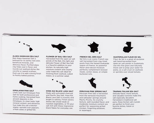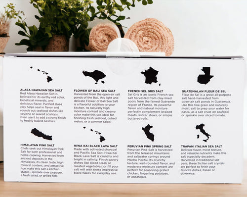 Our sourced salt vial set allows your taste buds to visit 7 regions known for unique salts & is a great introduction to different salts around the globe.