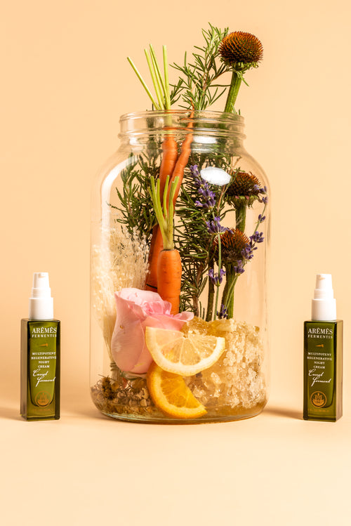 The Multipotent Regenerative Night Cream is a multi-correctional formula designed to tighten, hydrate and revitalize the skin’s overall complexion. ARÊMÊS uses a proprietary blend of botanicals, peptides and bioactive metabolites extracted from carrot and algae ferment. These metabolites were designed to create a protective matrix on the skin while at the same time penetrating deep into the skin’s cells that activate regeneration. Each application delivers nutrition, protection, and correction at the source, resulting in a renewed, replenished and rejuvenated appearance.
